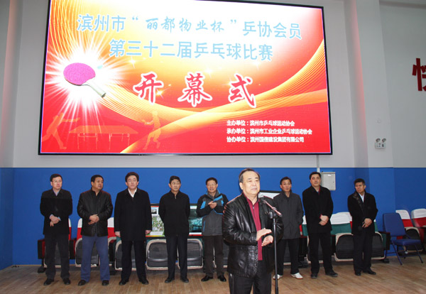 2015131日至21日,由濱州市乒乓球運(yùn)動(dòng)協(xié)會(huì)主辦,濱州市工業(yè)企業(yè)乒乓球運(yùn)動(dòng)協(xié)會(huì)承辦,濱州國(guó)信建設(shè)集團(tuán)有限公司協(xié)辦的濱州市“麗都物業(yè)杯”乒協(xié)會(huì)員第三十二屆乒乓球比賽在濱州市老年人體育活動(dòng)中心順利開幕。各縣區(qū)共計(jì)19個(gè)代表隊(duì)參加了此次比賽。